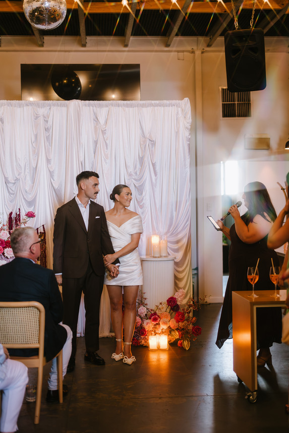 Mel & Cam celebrated tying the knot at the coolest wine bar, Ferg's Stepney in Adelaide! A smooch under the disco ball sealed the deal, with flowing wine and nibbles and a cheeky boogie to end the night. A simple celebration without compromising on all the good stuff.